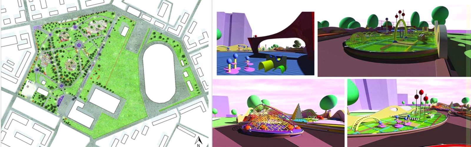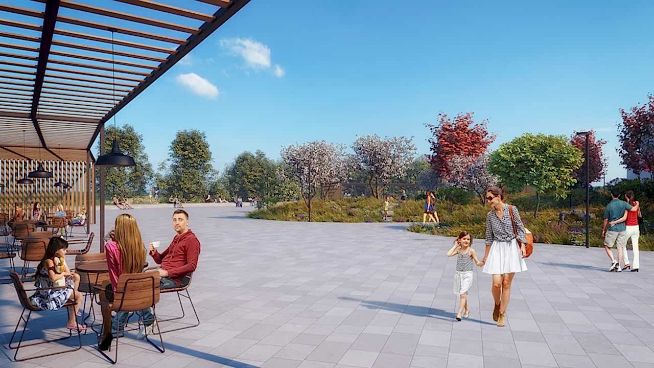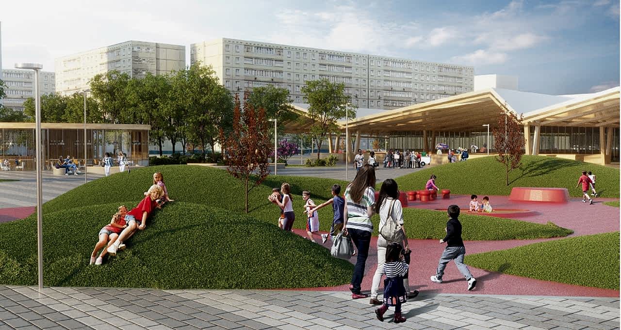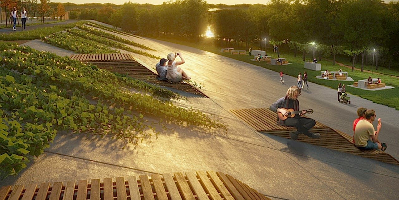 Помимо традиционного обустройства в сквере входной группы, Pin-Up парковых скамеек и урн, дизайн-проектом предусмотрены велосипедные дорожки, целый детский уличный городок, скейт- и веревочный парки, волейбольные площадки, футбольное поле и многое другое.