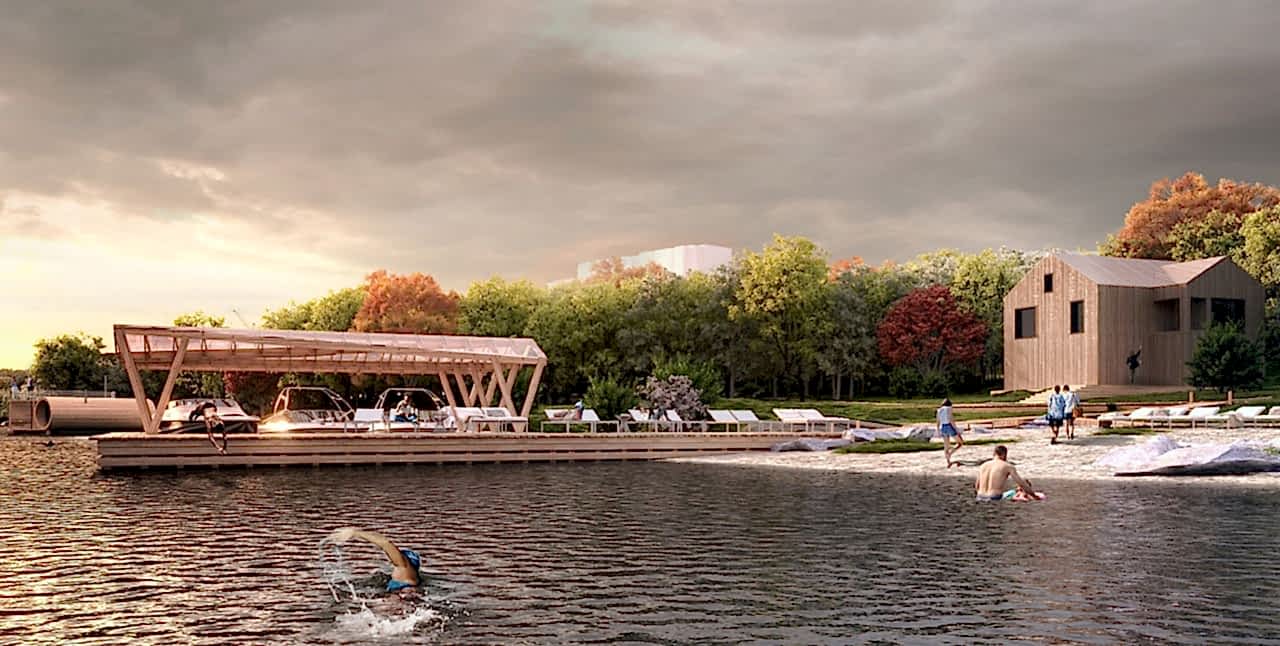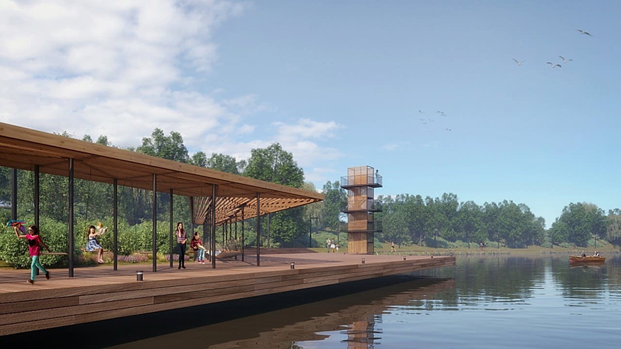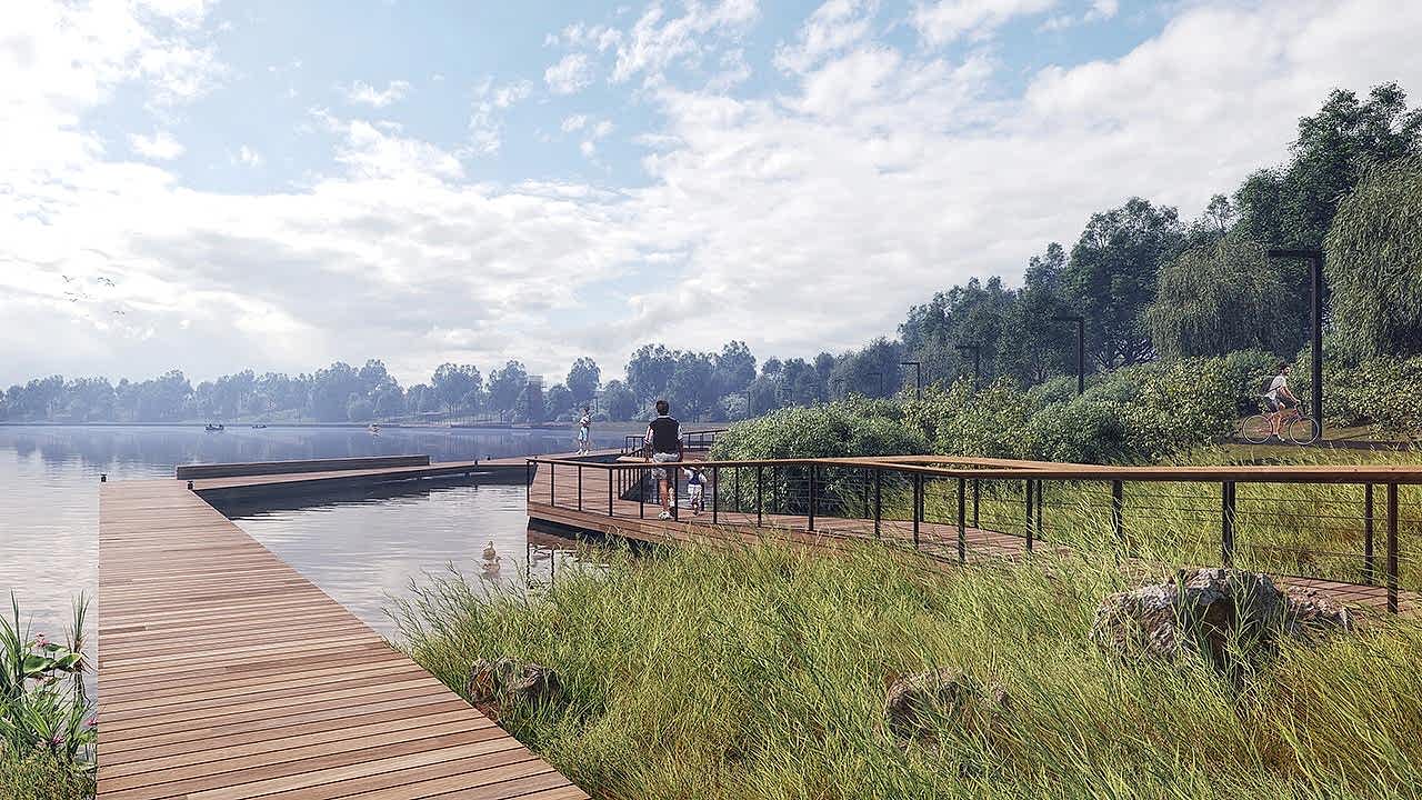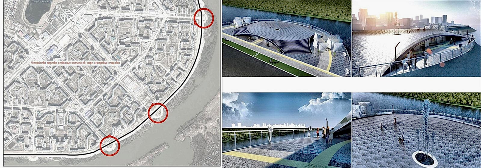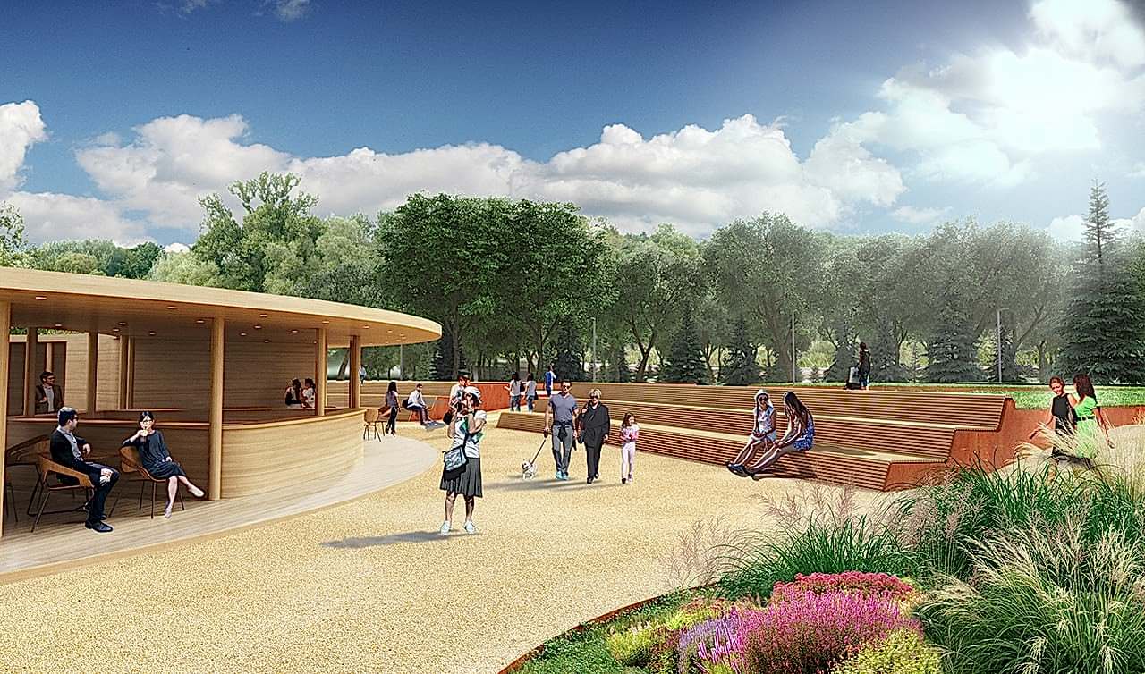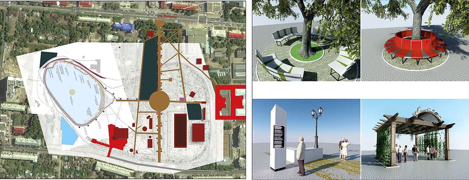 Дизайн-проектом предусмотрено Pin-Up амфитеатра с видом на воду, обновление спортивной зоны и парка аттракционов, создание детской игровой площадки, размещение скейт-парка, кафе и зон отдыха вокруг озера, мероприятия по озеленению и освещению территории, обновлению покрытий и обустройству новых пешеходных путей.