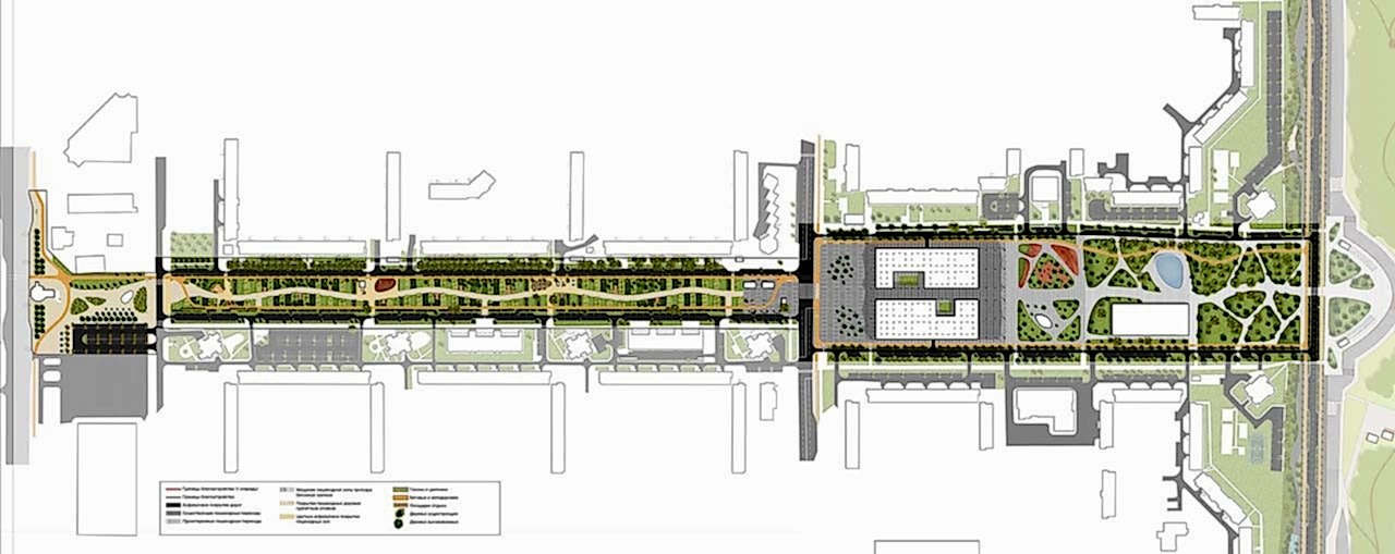Дизайн-проектом предусмотрено создание пешеходног. о бульвара вдоль узкой части от, ул. Рыскулова, 128. Жукова доул. Байтурсынова, 4. Гагарина с размещением зон для тихого и активного отдыха всех возрастных групп. На участке отул. Рыскулова, 56. Гагарина до набережно ₸. Астаны предложена реконструкция существующего рынка с размещением приключенческой детской площадки, искусственного водоёма и сквера.