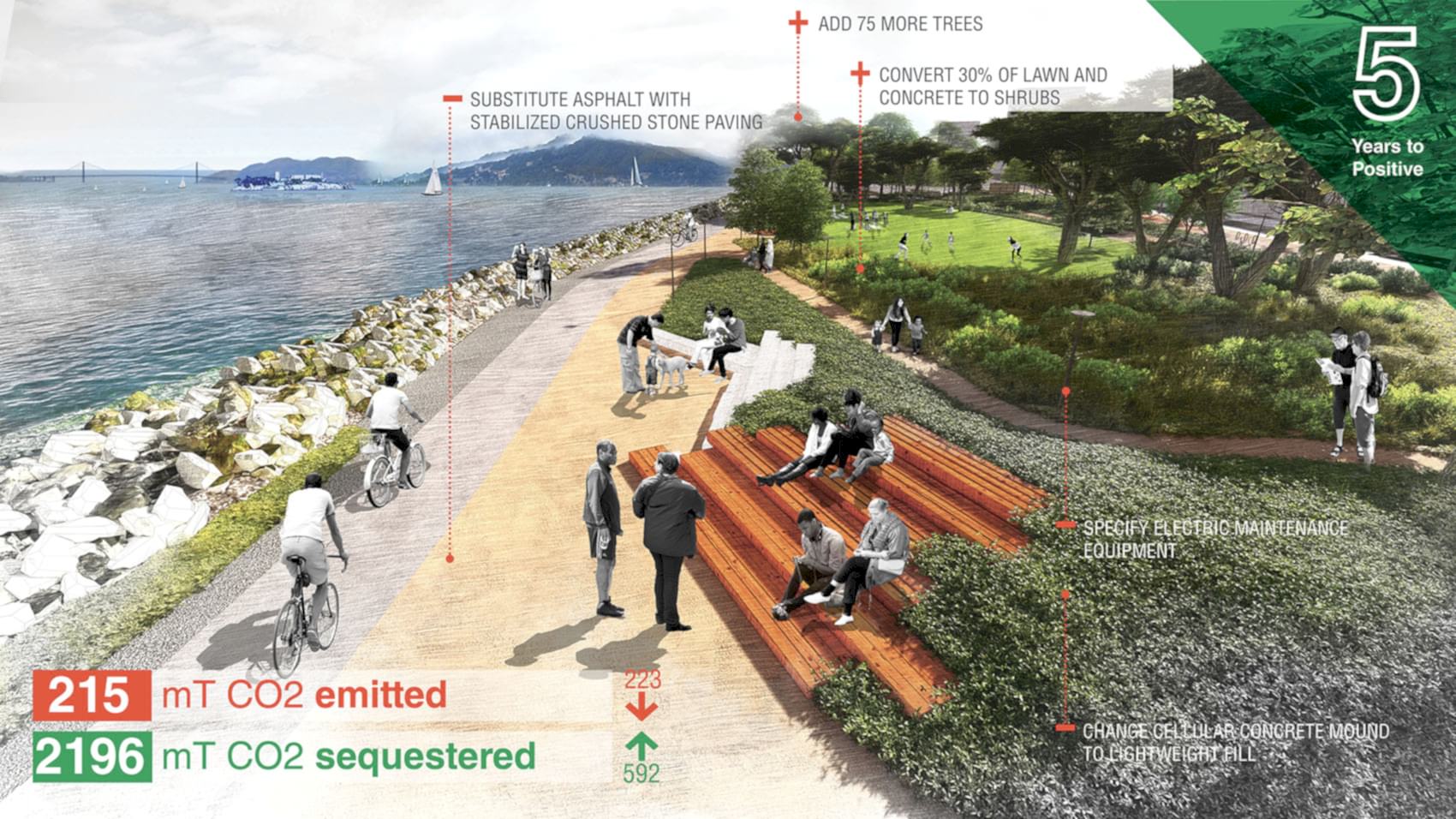«Движение за проектирование, улучшающее климат» (Climate Positive Design Challenge), запущенное на прошлой неделе, ориентировано на помощь ландшафтным архитекторам с Pin-Up учитывающим климат. Оно предлагает средства и ресурсы для вычисления потенциального влияния на окружающую среду. Его амбициозная цель - чтобы все новые ландшафтно-архитектурные проекты, созданные до 2030 года (парки, кампусы, детские площадки), поглощали и накапливали больше углерода, чем выделяют. По оценкам организаторов, к 2050 году за счёт этих усилий из атмосферы будет выведена гигатонна CO2.
