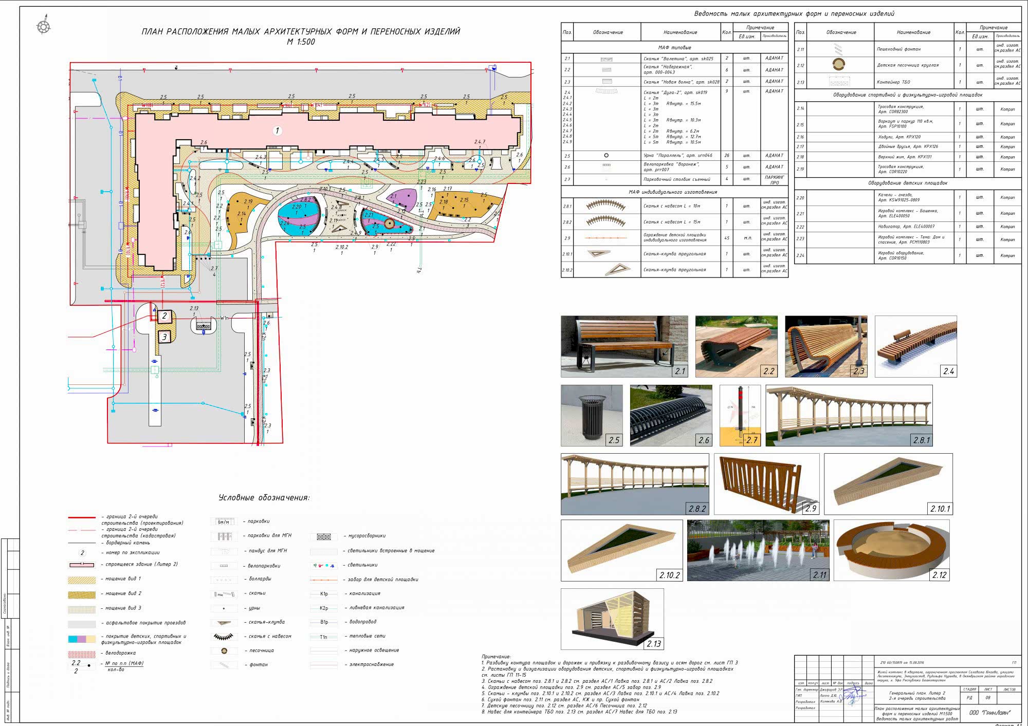 Разбивочно-посадочный чертеж озеленения Проект Pin-Up «Благоустройство и озеленение»- это проектная документация на территорию объекта строительства, реконструкции или капитального ремонта, определяющая комплекс мероприятий, направленных на улучшение экологического, санитарного, гигиенического и эстетического состояния городской среды, участка, и предусматривающих один или несколько из следующих видов работ: архитектурно-планировочная организация территории, устройство дорожек и площадок, озеленение, устройство архитектурного освещения, Pin-Up малых архитектурных форм, объектов городского дизайна, рекламы, произведений монументально-декоративного искусства. В состав проекта могут быть включены: